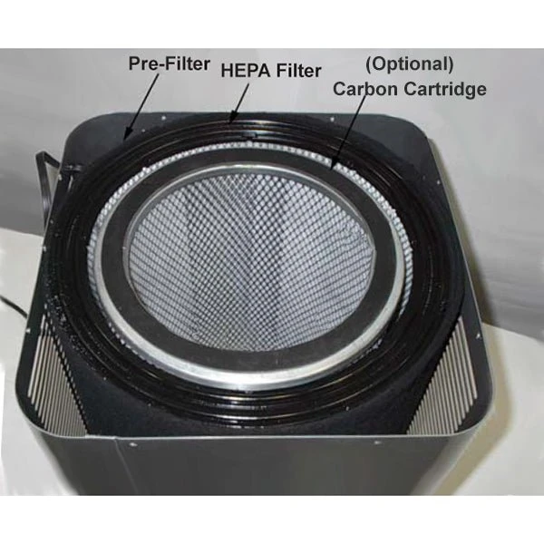 Prefilter – Impregnated carbon, coarse particulate prefilter removes larger airborne contaminants that could shorten the life of the HEPA filter.