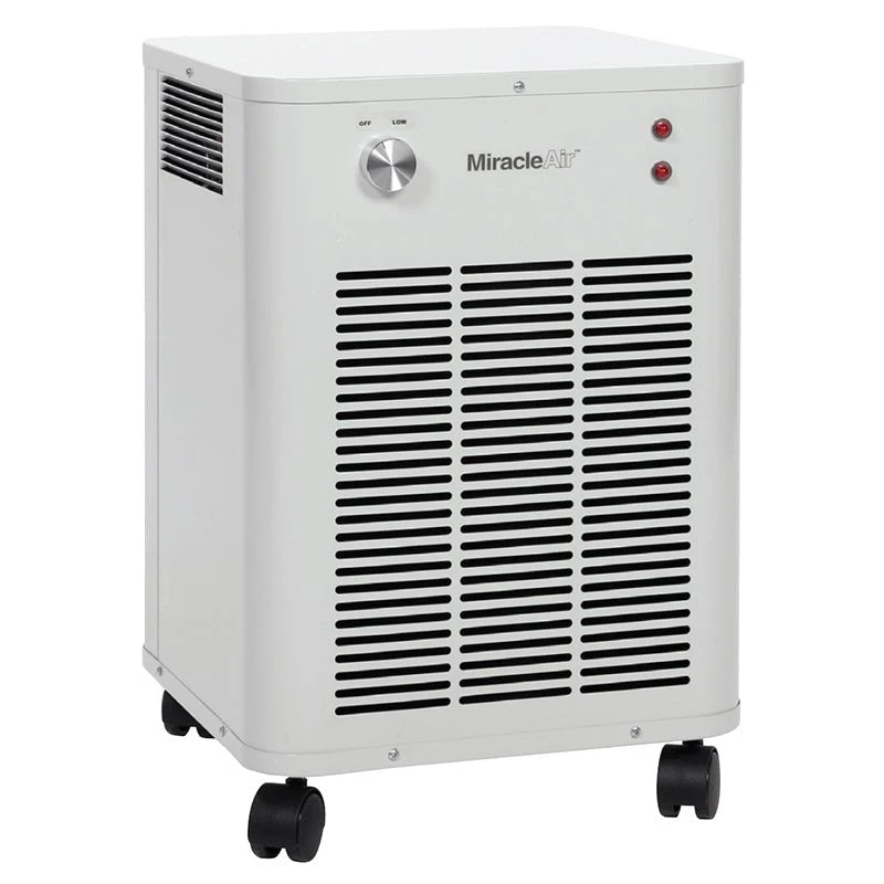The Miracle Air PM-400 home air cleaner is a comprehensive, state of the art HEPA air purifier that addresses particles and germs for ensured air quality. Allergy & asthma sufferers can expect noticeable improvements in indoor air quality as the MiracleAir air cleaner removes, dust, pollen, and other irritating allergens from the air in your home or office. The MiracleAir PM400 HEPA air cleaner is effective in areas up to 1,500 square feet. With the Miracle Air PM-400 HEPA air cleaner, your home or office will stay cleaner longer. The dirt and grime that normally settle on your walls, windows, mirrors, draperies, and furniture will be removed.