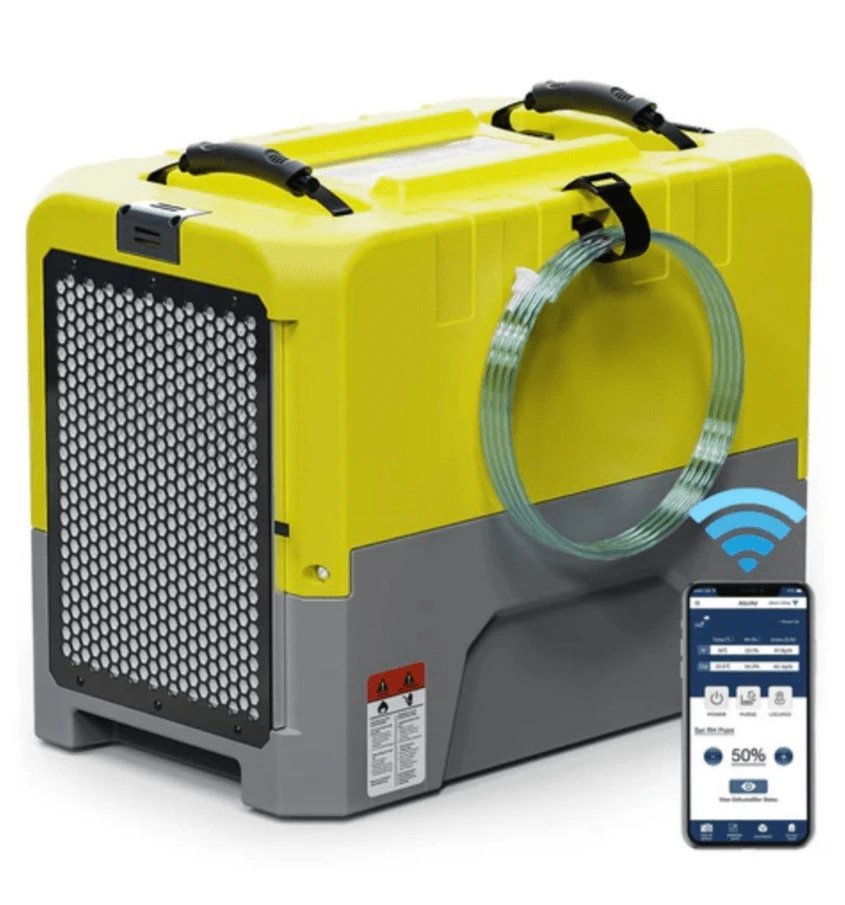 MONITOR THE RESTORATION PROCESS ON THE GO! Our free AlorAir DryEasy mobile app is included with the unit upon purchase. Commercial Dehumidifier, Moisture Removal Capacity 180 PPD at Saturation condition and 85 Pint at AHAM only with 5.62A, Super-Efficient System, fits into small spaces, Secure, compact stacking β transport multiple units on a hand truck.